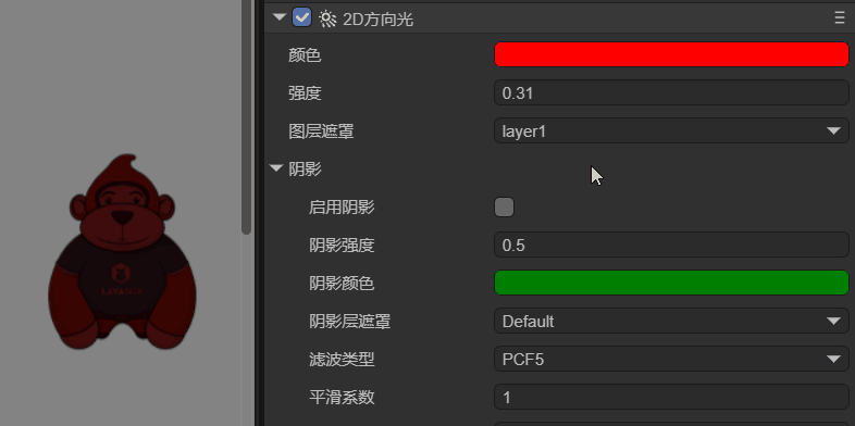 在LayaAir3.3版本开始,我们支持了2D灯光,例如:2D方向光(DirectionLight2D)、2D精灵光(SpriteLight2D)、2D自由形态光(FreeformLight2D)、2D聚光灯(SpotLight2D)这几个组件。本章节我们具体介绍如何使用灯光,以及这些灯光组件的基类共同属性。