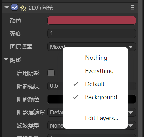 LayaAir3-IDE默认提供一个Default层(值为0),假设我们新建一个Background层(值为1),要让灯光同时照亮这两个层,可以通过以下方式实现:
