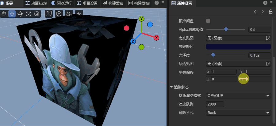 面对2D开发需求时,也可以用于2D Shader以及支持设置纹理偏移的2D渲染组件(例如2D网格渲染器)中。