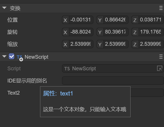 如果,该脚本只有 Getter ,那这个属性则是只读的,仅可以在IDE中显示,但不能编辑。