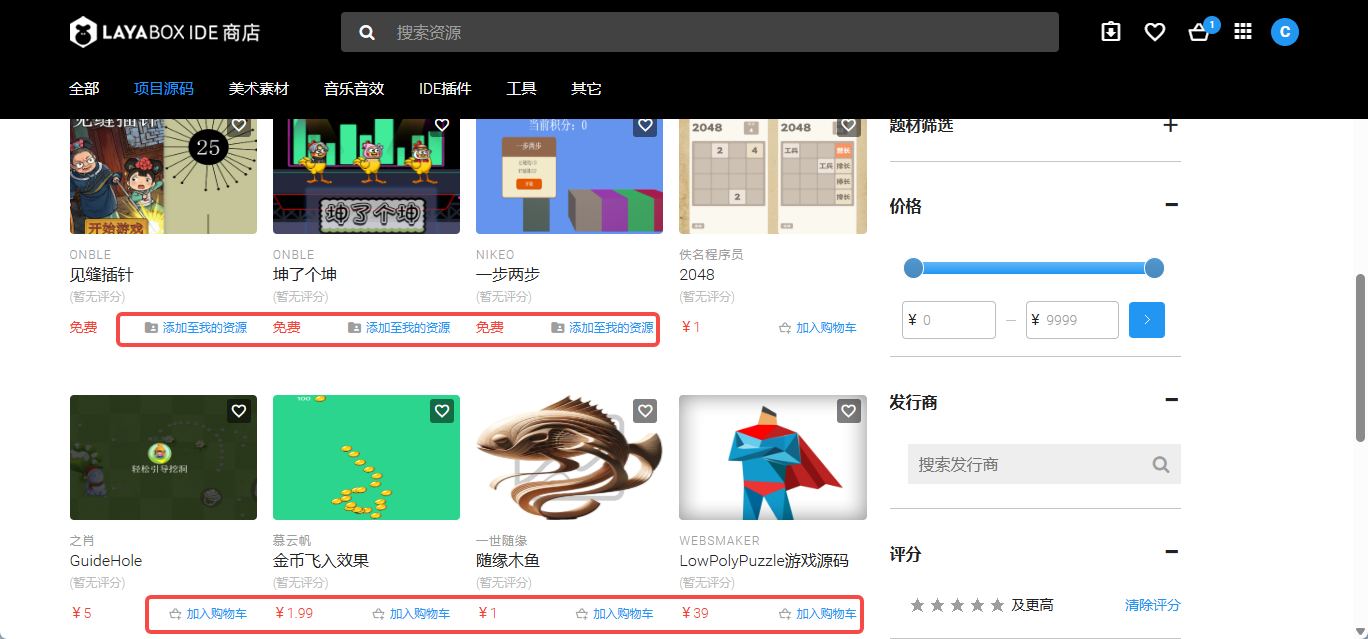 资源商店里有免费和收费的源码资源,链接为:https://store.layaair.com/?cid=7&cname=%E9%A1%B9%E7%9B%AE%E6%BA%90%E7%A0%81