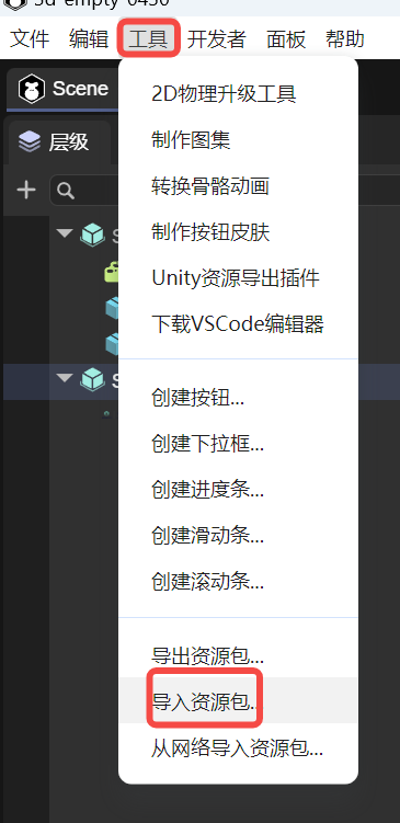 如果资源包是存在IDE本地硬盘中,也可以直接从本地导入,操作路径为:工具 -> 导入资源包,如图2-5所示。