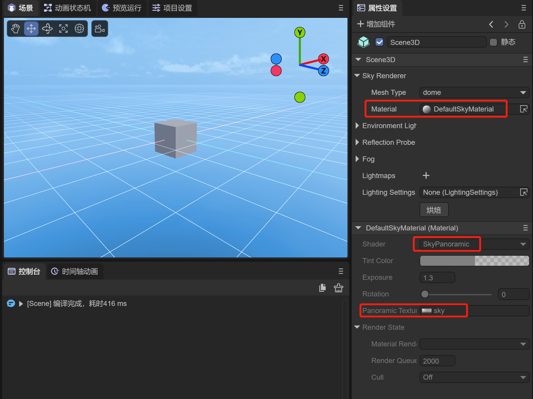 2.2 使用代码设置场景天空材质