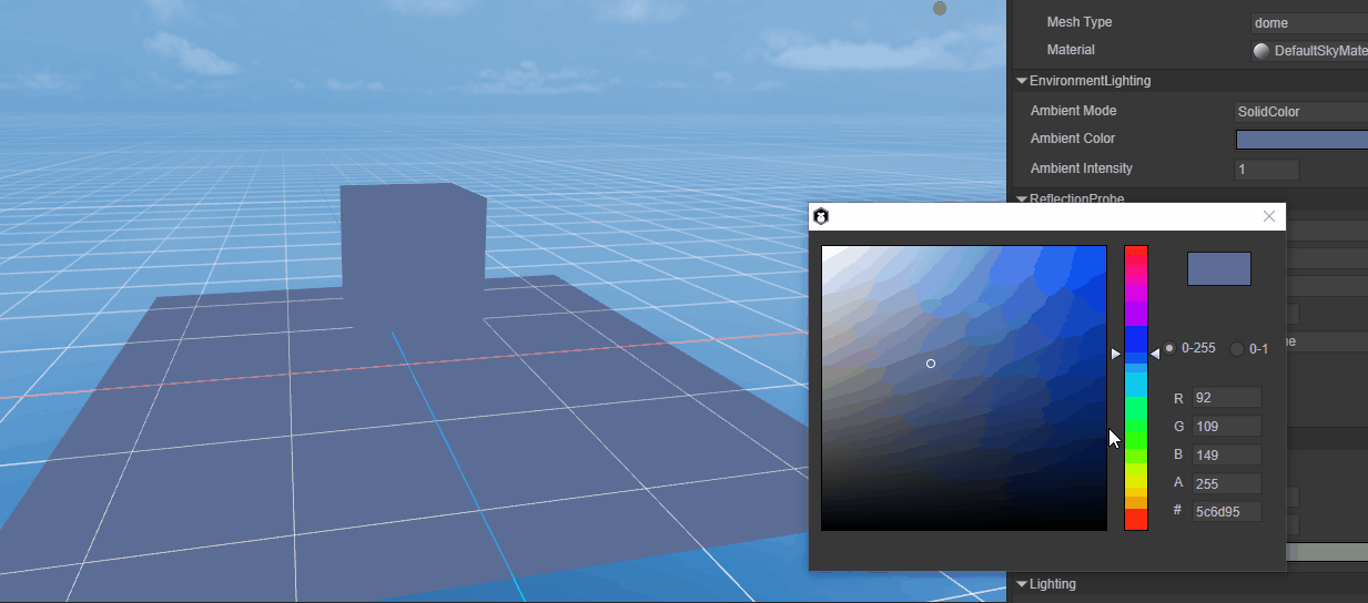可以看到使用Ambient Color时,调整颜色对环境光的变化,如动图3-2所示