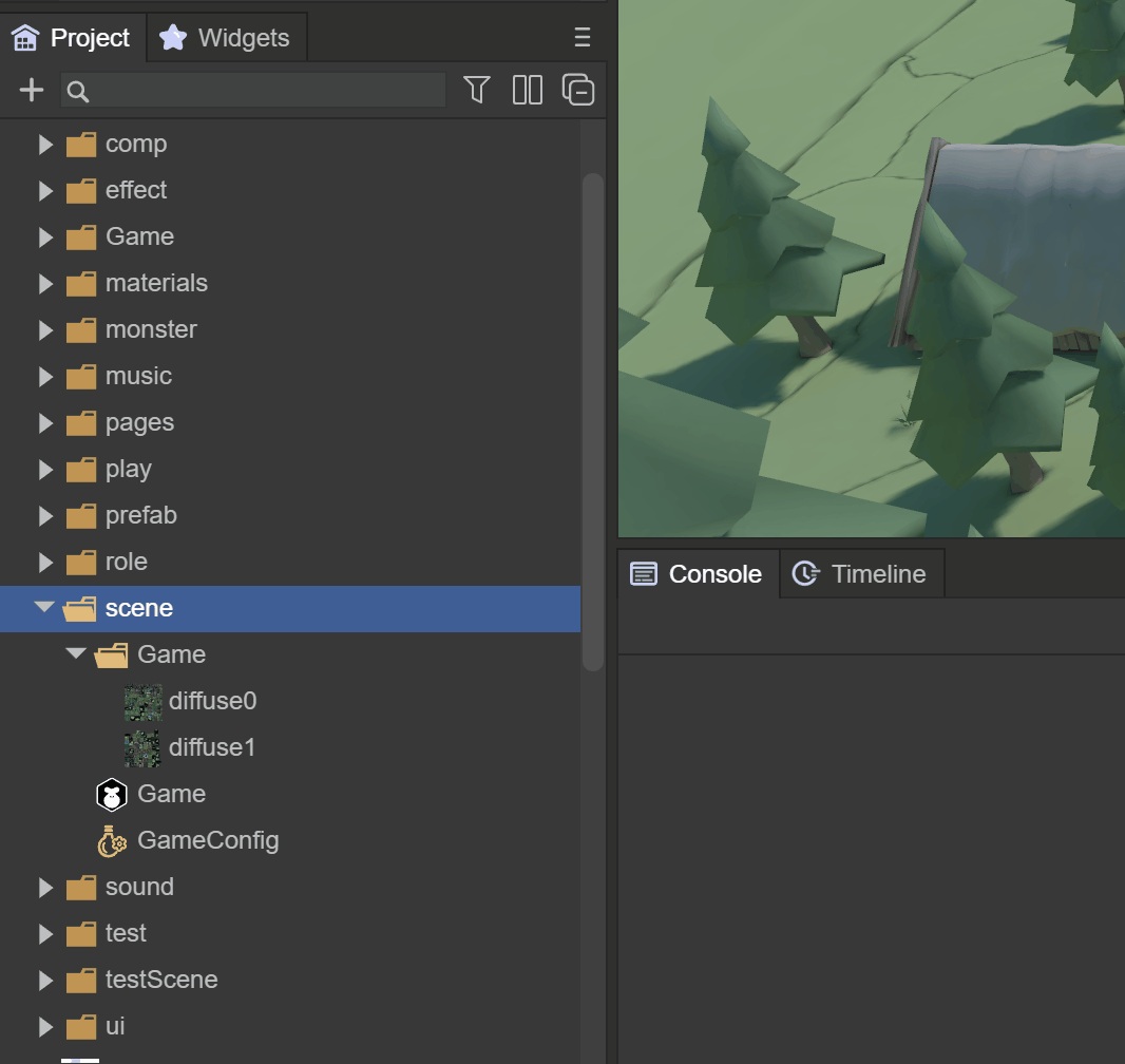 3D-RPG项目仅仅是只有一个场景的3D项目,大型的项目是由多个场景组成的,合理的管理3D场景会提高我们开发效率。