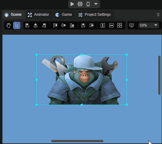 在2D场景中点击箭头图标即可进入平移模式,在该模式下持续按住鼠标左键即可往任意方向拖动所选中的控件。