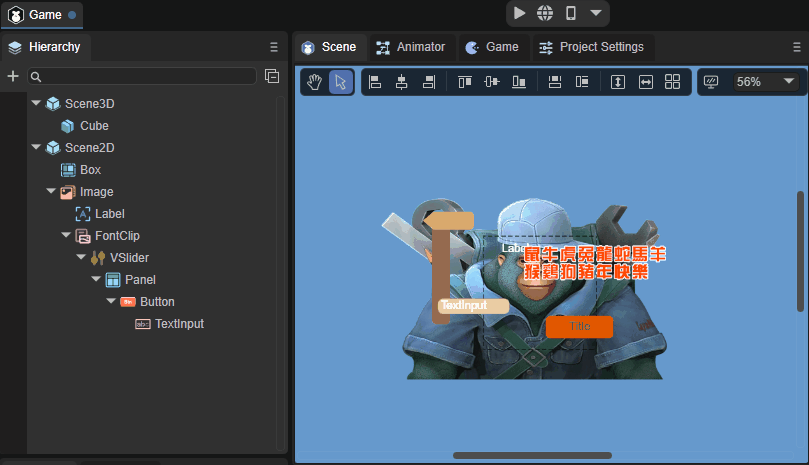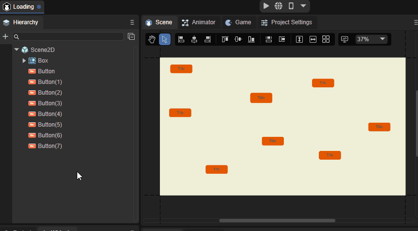 如场景层级很多,拖动想要移动的组件会比较困难,这时候就可以从层级面板单击选中该组件然后进行拖动,效果如动图3-1所示。