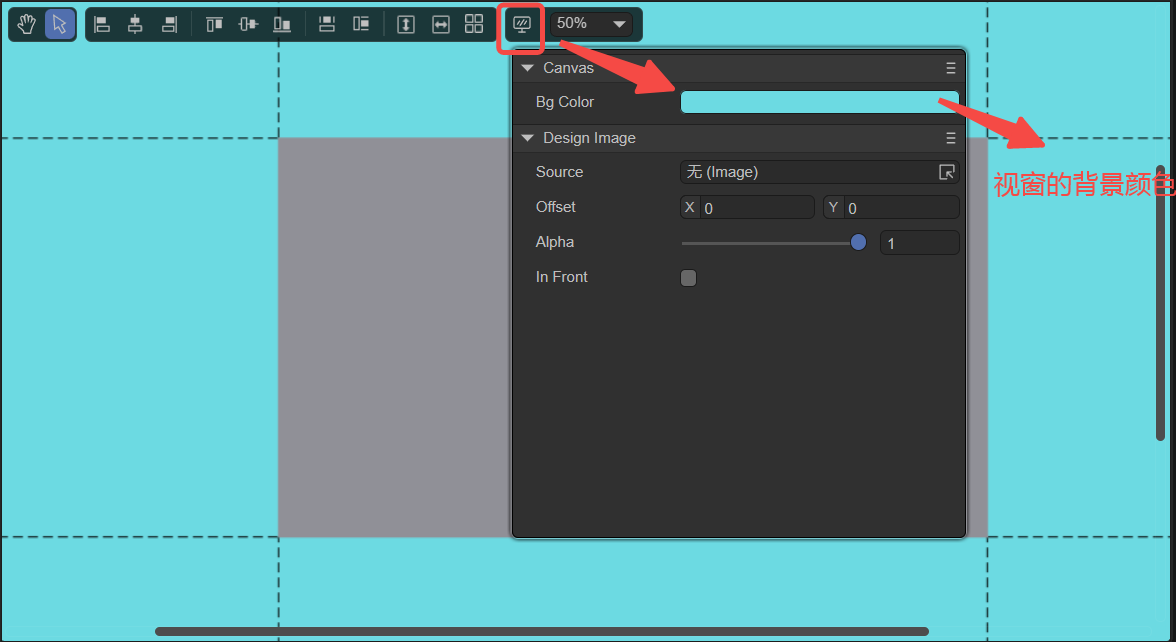 还可以在Design Image中,设置UI编辑时的参考图(根据美术需求设计UI时,放置在场景中的位图,运行时不显示)。参数设置如下: