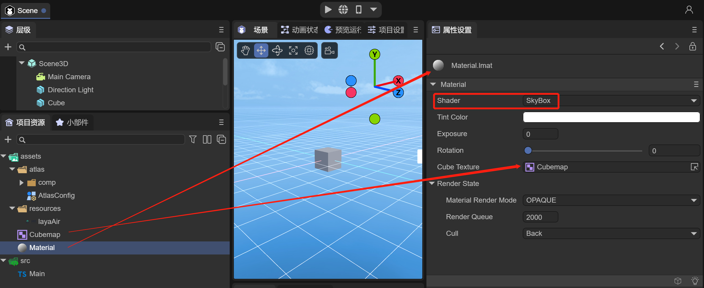 具体如何使用TextureCube,开发者请参考《3D场景环境设置》中的天空盒的详细讲解。