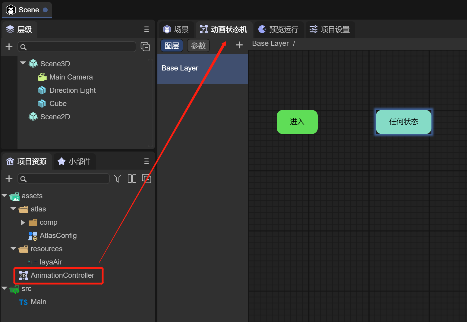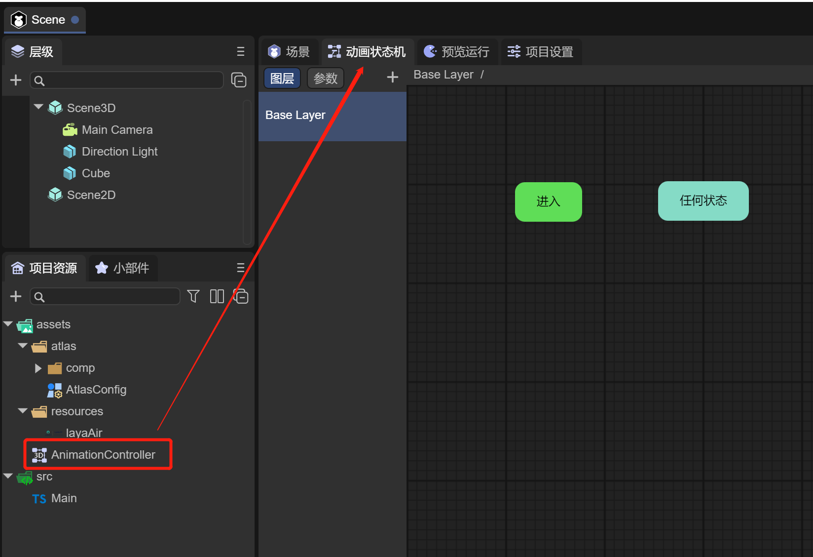 如图2-24所示,创建动画状态机2D后,点击后打开