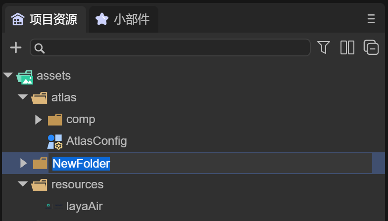 如图2-3所示,在快速创建菜单中,点击“文件夹”会在assets下创建一个文件夹,并可以修改文件夹名字