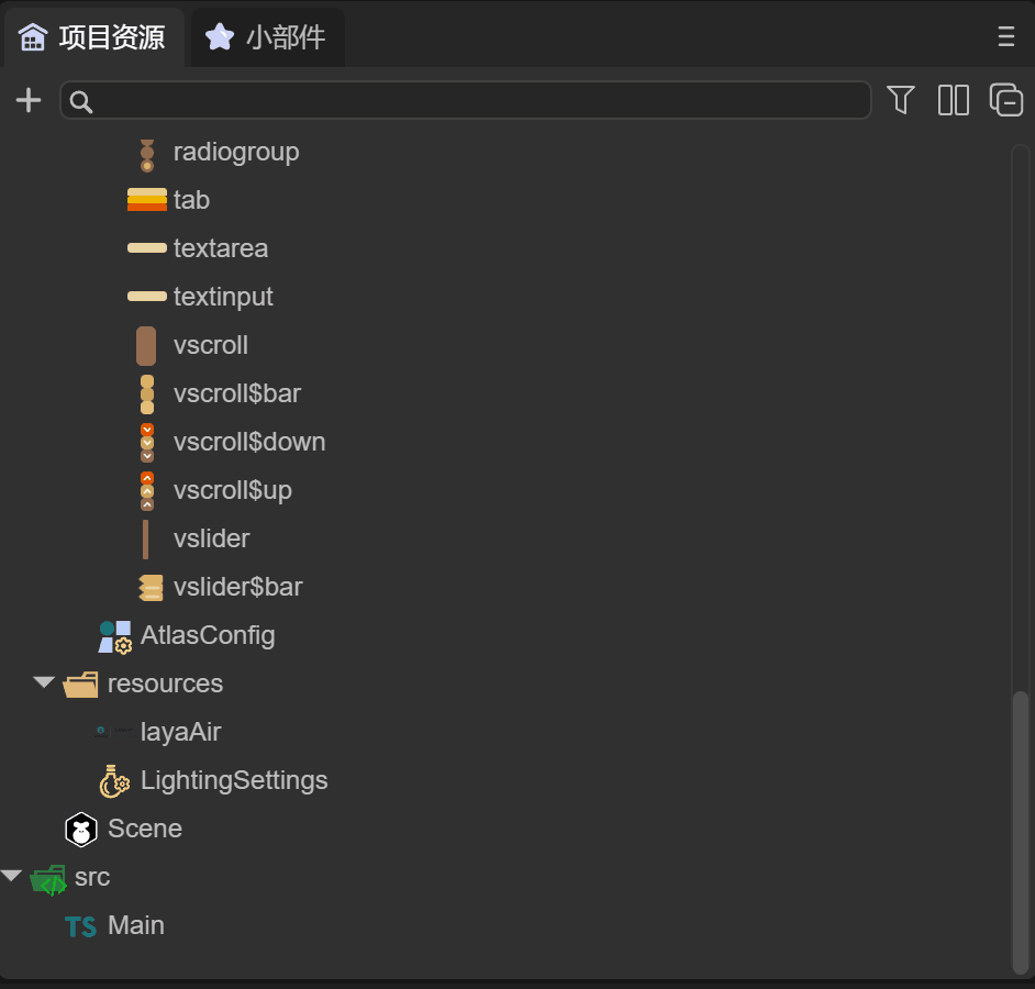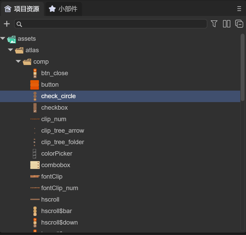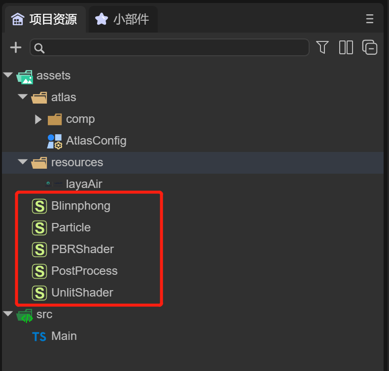由于assets下资源会很多,通常最常用的方式是通过搜索查找