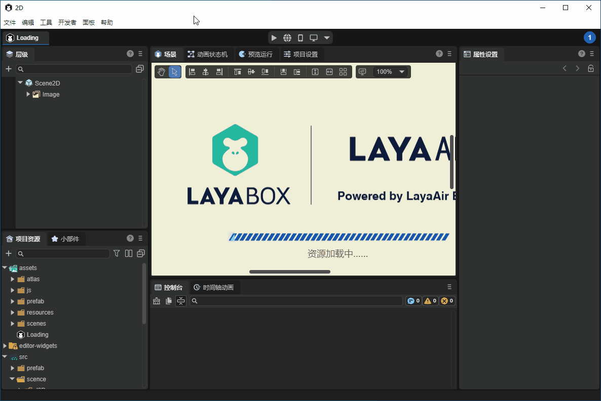 回到LayaAir-IDE中,运行查看控制台,如动图4-5所示,可以看到打印了日志。