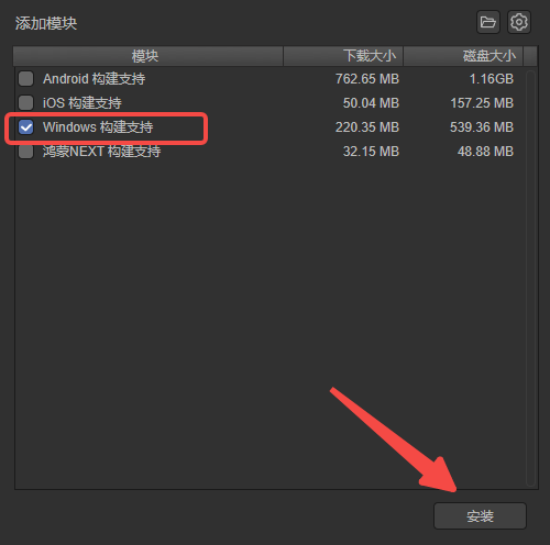 如果是首次运行,没有安装相应的native模块,则会弹出图2-6所示的提示,先安装环境构建的支持包。