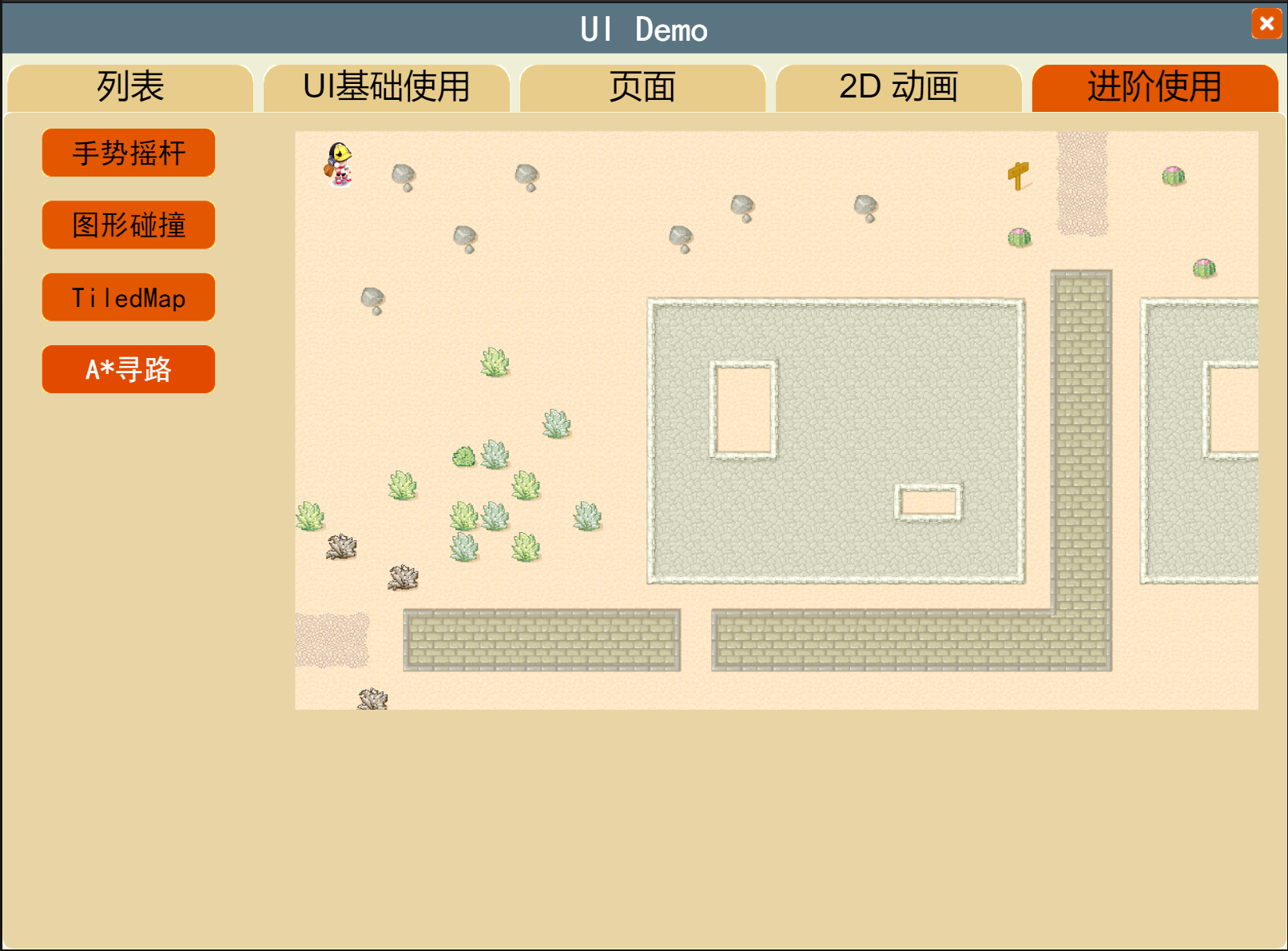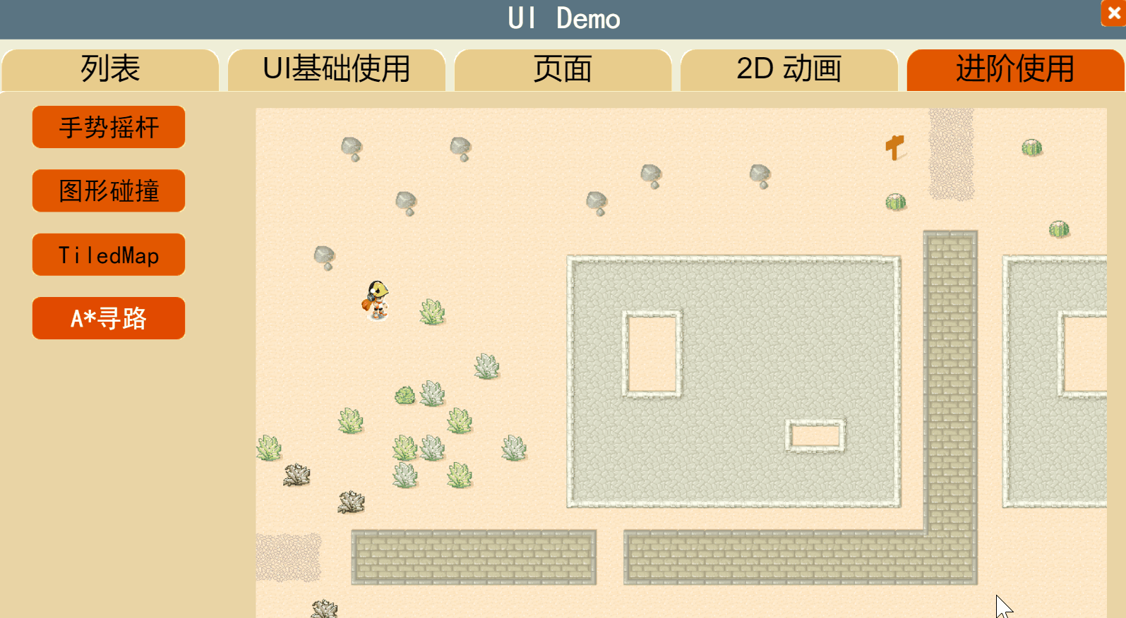 其中有一个2D的A*寻路的示例,开发者可以先通过此示例来了解2D项目中是怎么使用的,如动图2所示,