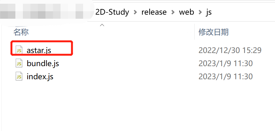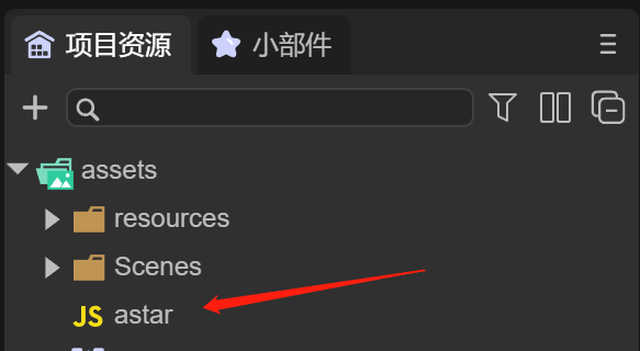 将 astar.js 放入 assets 目录下,或者 src 目录下,这里以 assets 为例,如图2-4所示