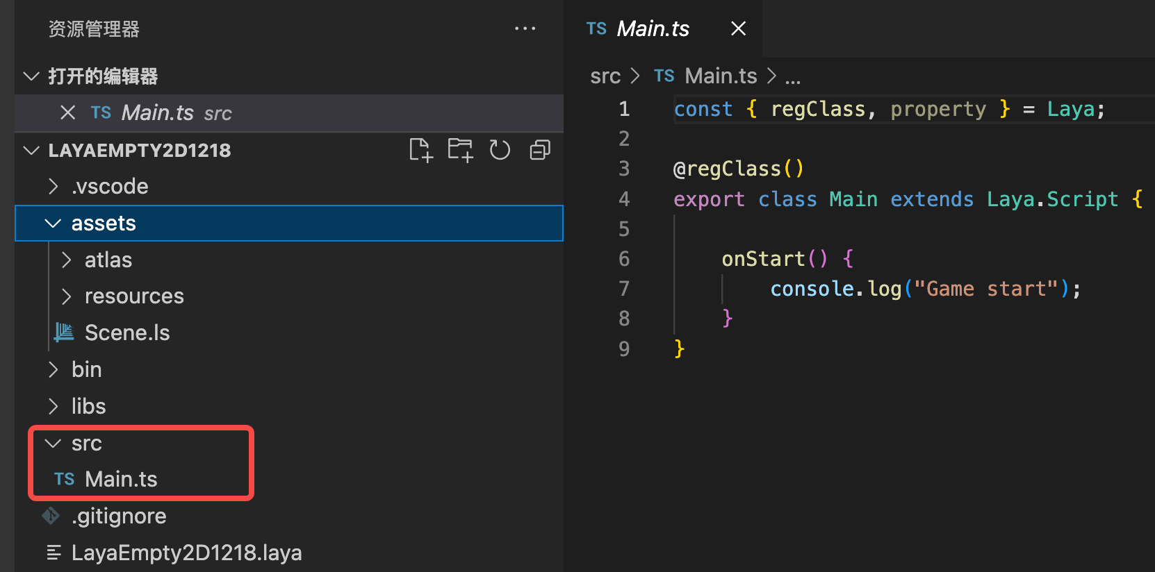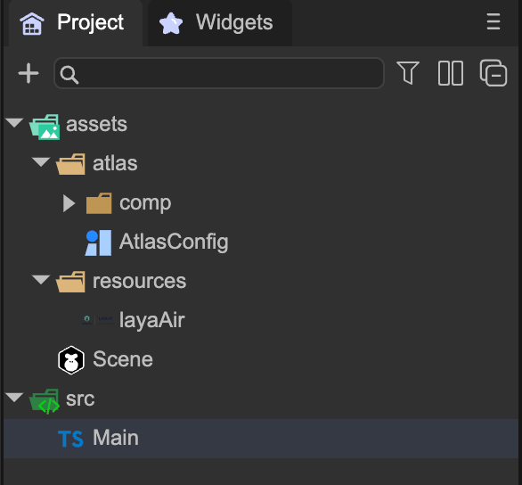在LayaAir3.0的项目工程目录结构里,开发者真正需要关心的只有两个目录,项目资源目录assets与项目源码目录src。其它的目录,大家知道其作用即可。