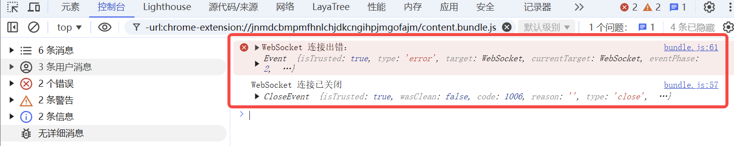 如果连接出错和关闭,控制台打印效果,如图1-2所示: