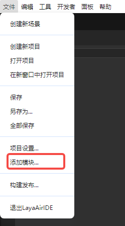 在构建发布Liunx之前,我们需要先添加Linux的发布环境模块,如图2-1所示,点击文件菜单栏下的添加模块选项,