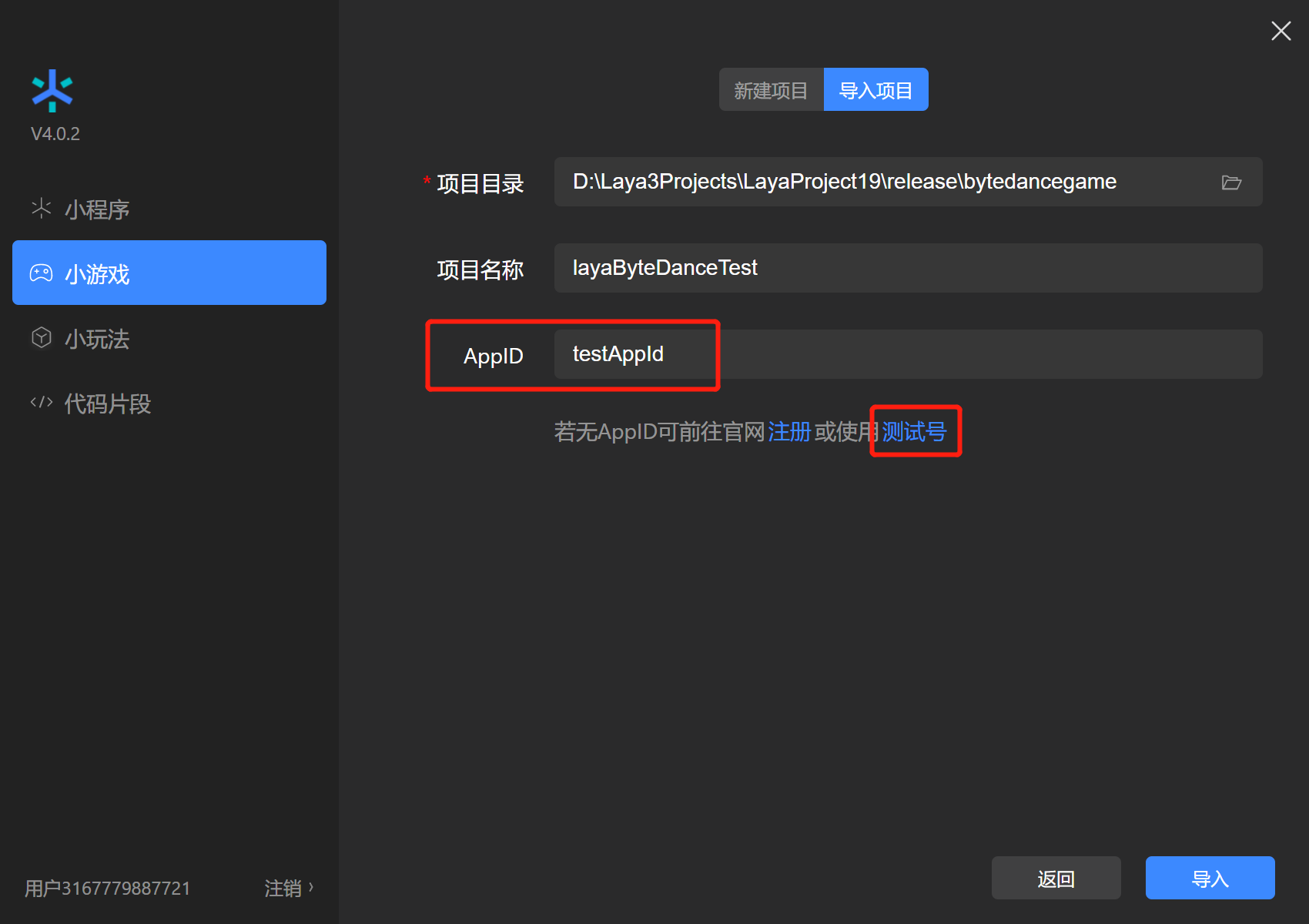 3.2 导入小游戏项目