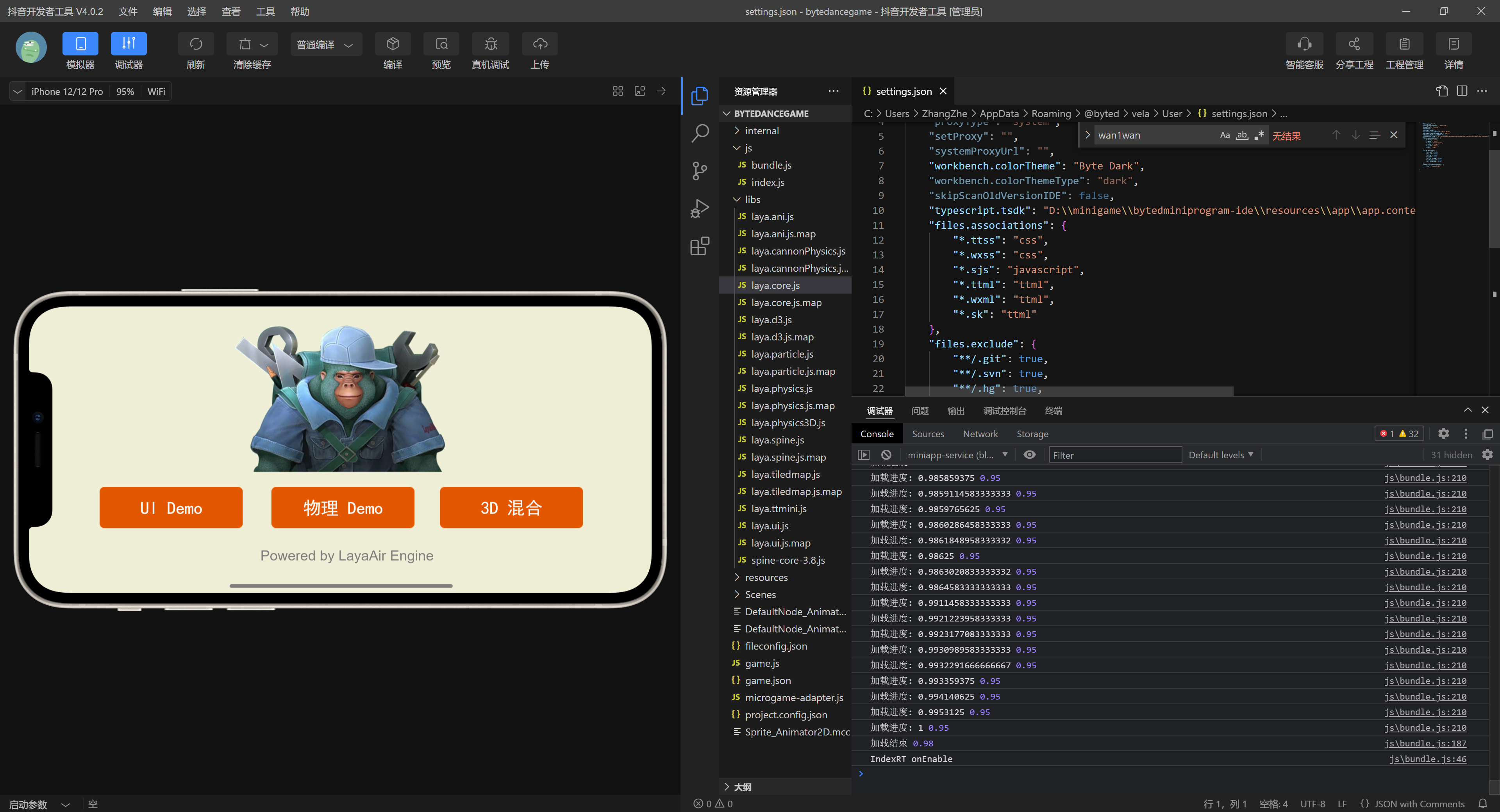 这里主要介绍一下printProgress打印的内容,在抖音开发者工具打开并编译我们导出的项目后,会打印如下日志: