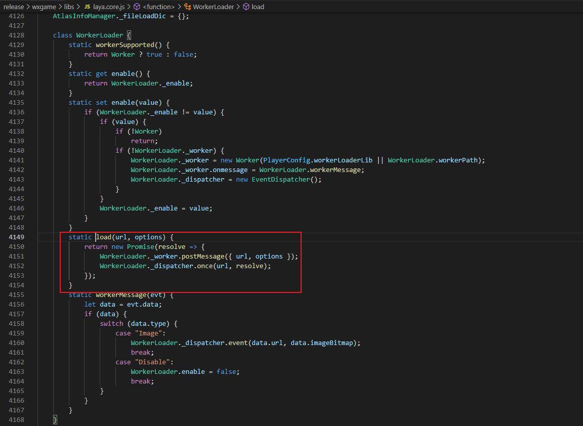 在加载过程中会执行下图中MiniWorkLoader基类的load方法,将url传入到woker线程中进行处理: