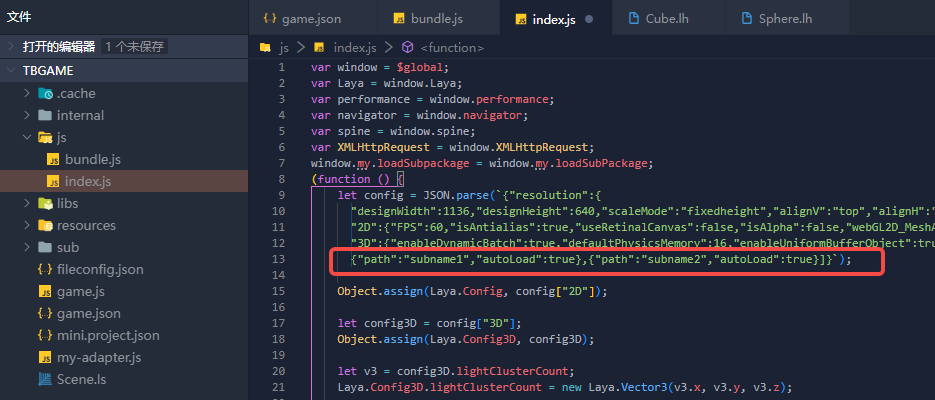 Laya.loader.load("subname1/Cube.lh").then((res) => {