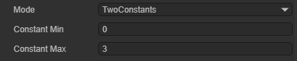 TwoConstants: Set a maximum and a minimum value as the constant range. The actual attribute value of each particle will randomly change within this constant range.